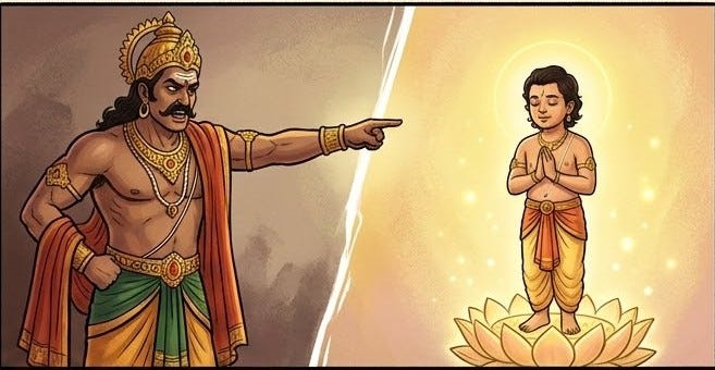 Reading about Iranyan, I see a father who turned his power into a massive ego-trap, demanding everyone, especially his own kid, be a carbon copy of his tyranny. But then there’s Prahaladan. Even though he was raised in that shadow, he didn’t let his father’s “villain tendencies” define his life. It makes me realize that even if a father, a family, or a whole society goes down a dark path, there is always a chance for individuals to bear the light and lead the way back.